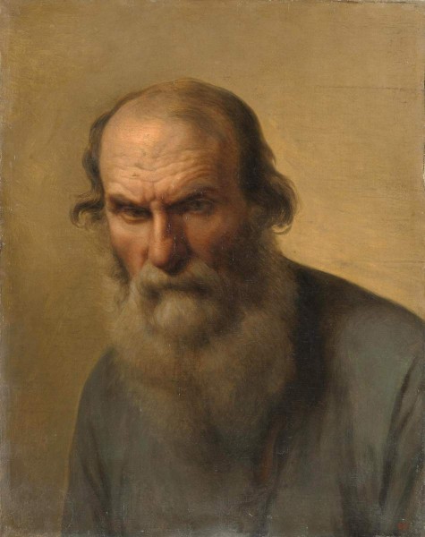Картина упоминается в письме В. И. Григоровича о выставке 1827 в ИАХ, где она экспонировалась под названием «Голова старика» . Считается, что она в числе четырех картин была в апреле 1827 предложена Венециановым к приобретению в ИЭ, но была отклонена вместе с картиной «Крестьянка, опершаяся на руку». Живопись первой половины XIX века (А–И). СПб, 2002. С. 127.