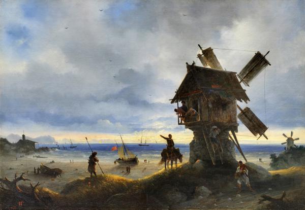 Очевидно, что Айвазовский использовал в этом сюжете впечатления, полученные от произведений старых голландских мастеров, увиденных в коллекции Эрмитажа. В частности, композиционный строй этой картины близок «Пейзажу с мельницами» голландского живописца Арта ван дер Нера, с 1815 года находящемуся в собрании Императорского Эрмитажа и почти совпадающему с картиной Айвазовского по размеру.