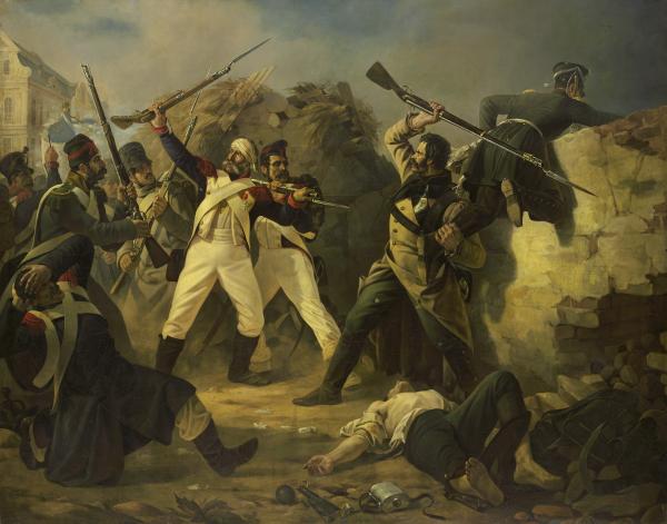12 июня 1812 года 600-тысячная армия, возглавляемая Наполеоном, вторглась в Россию. На первом этапе войны (с июня по сентябрь 1812 года) русская армия с боями отступала от границ России до Москвы, дав 26 августа сражение у деревни Бородино под Москвой. В начале второго этапа войны (с октября по декабрь 1812 года) наполеоновская армия стремилась уйти на зимние квартиры в не разоренные войной местности, а затем отступала до границ России, преследуемая русской армией, голодом и морозами. После битвы у реки Березина в середине ноября Наполеон бросил своих солдат и тайком бежал в Париж. Но русская армия и ополчение не остановились на границах России. В течение 1813–1814 годов они составляли ядро освободительной армии Европы. По мере продвижения русских на запад к ним присоединялись ополчения побежденных Наполеоном стран: Пруссии, Австрии и других. 19 марта 1814 года части союзной армии во главе с императором Александром I триумфально вступили в Париж. Картины военной жизни в отечественном искусстве XVI–XX веков. СПб, 2022. С. 49.