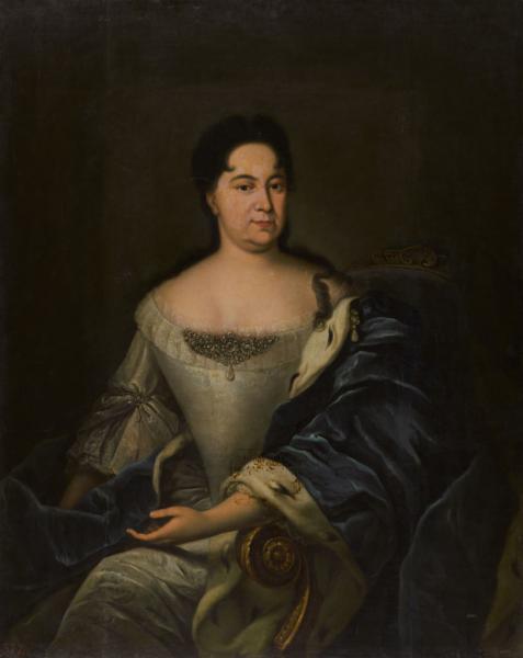 Возможно, восходит к оригиналу Л. Каравака. Для размещения в Романовской галерее авторский холст (99 х 89) был надставлен по периметру. Со времени портретной выставки 1870 года и долгие годы позднее считался портретом царевны Екатерины Иоанновны. Однако совершенно очевидно, что на портрете изображена Дарья Михайловна Меншикова, супруга князя Александра Даниловича. Портрет мог быть написан не позднее сентября 1727 года, до ареста и ссылки Меншикова. Светлана Моисеева / Петр I. Время и окружение. СПб, 2015. С. 108.