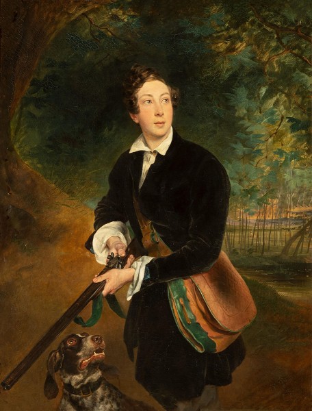 Мягкость живописной манеры и цвета в написании обрамляющих их тканей, а также устремленный вдаль мечтательный взгляд, волосы, переданные быстрыми короткими мазками, и, наконец, пейзаж, исполненный широко и эмоционально, вносит романтическую ноту в характеристику персонажа. Сопровождает юношу преданно смотрящая на хозяина собака, написанная художником с точным знанием повадки животного. На лице охотника видна радость. Она рождена восторженным ощущением жизни природы, её красоты. Единственный раз, именно в этом портрете Брюллов воспроизвел приметы русского пейзажа: елочки, болотистое редколесье, висящую в воздухе сырость.