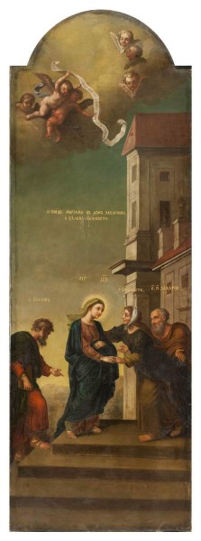 Икона «Пришествие Богоматери в дом Захарии и целование Елизаветы» — одна из «композиционных» и поэтому уникальных икон. Это пока единственный в своем роде пример того, как И. Я. Вишняков пишет «палаты», причем, скорее итальянского, нежели русского вида. «Целование Елизаветы» и соответственно расположенная в южной части ряда «Троица» хорошо «поддерживают» иконы среднего, праздничного ряда. Светлана Моисеева. Образа из иконостаса Троицкой соборной церкви в Санкт–Петербурге // Живописных дел мастер. К 325-летию Ивана Яковлевича Вишнякова. СПб. 2024. С. 49.