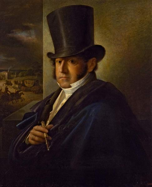 Булгаков Константин Яковлевич (1782–1835) — младший сын дипломата Я. И. Булгакова. В 1797 зачислен на службу в Коллегию иностранных дел. При Александре I причислен сверх штата к венской миссии, затем направлен в распоряжение главнокомандующего Задунайской армией Н. М. Каменского. В 1814 — действительный статский советник, в 1816 — почт-директор в Москве, в 1819 переведен на ту же должность в Петербург. При К. Я. Булгакове было учреждено сообщение посредством дилижансов, а также постоянная петербургская городская почта. В 1822 заключил почтовую конвенцию с Пруссией и Австрией, ускорившую доставку писем из-за рубежа. В 1826 — тайный советник, в 1831 — директор почтового департамента. Был известен широкой благотворительностью, любовью к литературе и искусству, организацией многочисленных благотворительных вечеров, водил дружбу со многими деятелями искусства, современниками-коллекционерами (в частности с А. Р. Томиловым). Автор переписки, ставшей хроникой русской жизни начала ХIХ века.  Портретная галерея Русского музея. Лица России. СПб. 2012. С. 109.