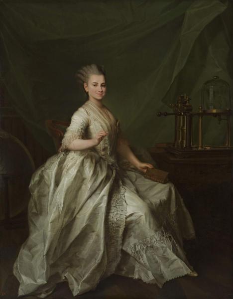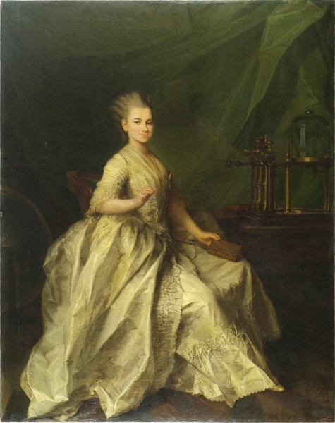 Изображена в белом шелковом платье, установленном для воспитанниц старшего (четвертого) возраста Воспитательного общества благородных девиц. Справа на столе — антлия — вакуумный насос, использовавшийся как пособие при обучении Смолянок. Живопись XVIII века. Том 1. СПб, 1998. С. 108.