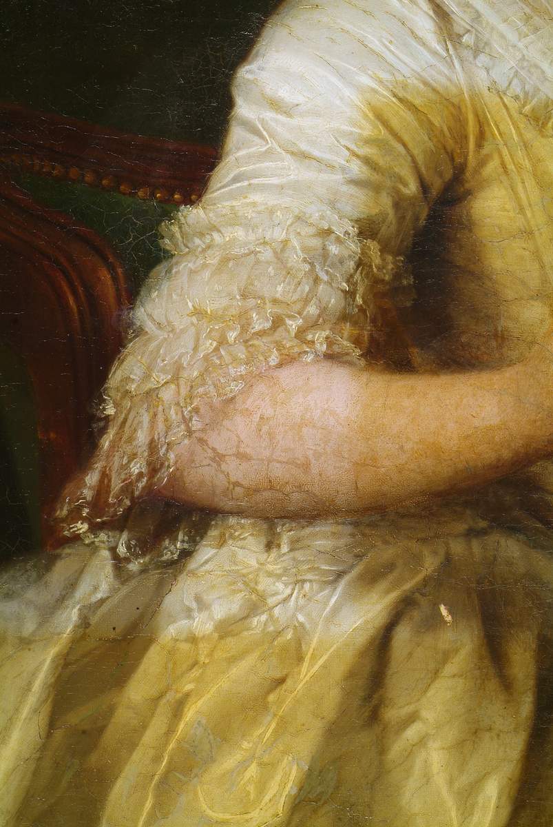 Проведенные исследования показали, что на данном портрете были применены те же реставрационные приемы, что и на портрете Г.И. Алымовой. Кроме того, был обнаружен воск в некоторых пробах с изображения платья. Из-за поражения плесенью участки с воском сильно потемнели и позднее неоднократно записывались.