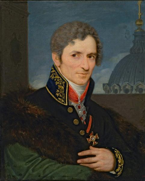 В 1806 году в северной столице было начато еще несколько знаменитых построек. К строительству нового здания Горного института на набережной Васильевского острова приступил Андрей Никифорович Воронихин, бывший крепостной графа Строганова. Гордо смотрит на зрителя архитектор, запечатлевший себя на портрете в интерьере Строгановского дворца – физическом кабинете, выполненном по его проекту. А за окном открывается вид на купол Казанского собора – одного из главных творений Воронихина.