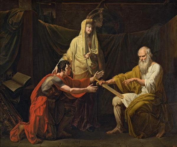Марфа Посадница (Вручение пустынником Феодосием Борецким меча Ратмира юному вождю новгородцев Мирославу, назначенному Марфой Посадницей в мужья своей дочери Ксении)