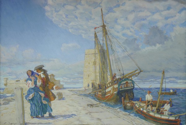 Home page Online resourcesCollectionsWorks of Painting Walk on the pier Lanceray, Y. 1875, Павловск около Санкт-Петербурга — 1946, Москва Walk on the pier 1908 Cardboard, tempera, graphite, gouache. 64 х 89 Ж-2147. Пост. в 1928 г. из Ленинградского Государственного Музейного фонда Period Late 19th century – Early 20th century CategoryHistory Painting Keywords The Epoch of Peter the Great (1682-1725) | The Romanovs | The Rulers of the Russian Empire | Seafarers, naval officers, sailors | Emperors | female costume | male costume | boat, sailing ships, ships | seascape | day Virtual exhibitions and 3d-tours Peter I and his EraSeafarer and Carpenter. Peter the Great in Russian Artistic Culture Share «Виртуальный Русский музей» в социальных сетях: