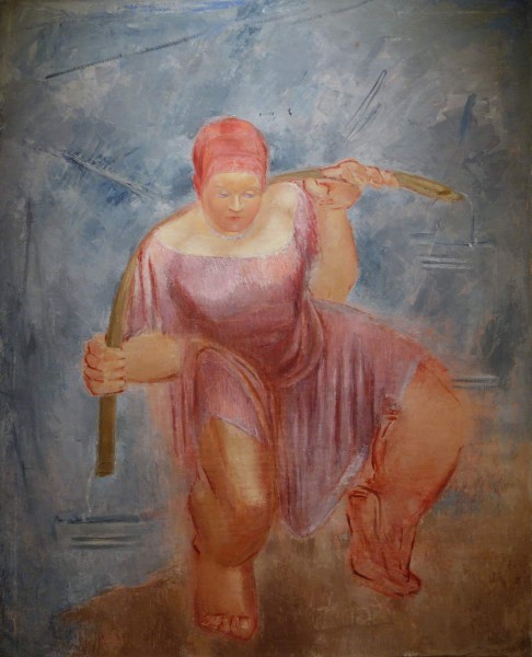 Основные три выставки «Круга художников» прошли в Русском музее (1927, 1928, 1929) и Киевской картинной галерее (1930). Поиски декларируемого «стиля эпохи», монументального по форме и емкого по содержанию, воплотились в создании серии программных живописных произведений. Пожалуй, самое известное из них — «Жница» (1926–1927), показанная на первой выставке общества. Оглядываясь на «крестьянский цикл» Малевича, Пакулин создал свою версию реализма. Он написал огромное полотно, добиваясь внешнего сходства с фреской, лишь отдаленно напоминающее о первоначальных натурных зарисовках и этюдах, и некоторые из них, представленные на выставке, об этом ясно свидетельствуют. Тот же путь «очищения» мотива от суетной будничности прослеживается и в другой программной работе художника «Женщина с ведрами». Ольга Мусакова. Вячеслав Пакулин. В поисках стиля эпохи // Вячеслав Пакулин. В поисках стиля эпохи. СПб. 2021. С.10.