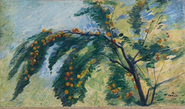Характер живописной манеры Сарьяна точно отмечает все моменты его отношения к Востоку. Он начинает с романтической мечты о далеких странах, и картины его носят нарядно-сказочный характер. <...> Затем начинается переходный период: мазки развертываются павлиньими веерами, и начинает выказываться характерная для Сарьяна оранжево-фиолетовая тема, являющаяся ключом его колорита. Контуры вещей еще неясно выступают из-под драгоценной световой ткани, окутывающей их. Он еще продолжает писать не реальности Востока, а свою знойную мечту о нем (1907–1909 гг.). Волошин М. А. Сарьян // Аполлон. СПб, 1913.