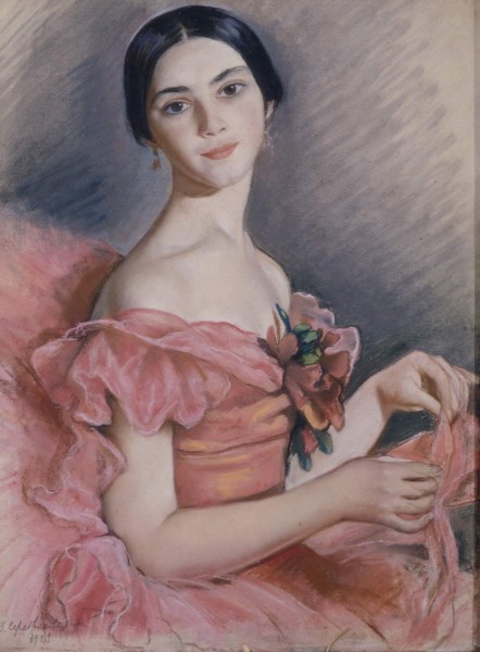 В 1922 году Серебрякова получила разрешение бывать за кулисами Мариинского театра в дни балетных спектаклей. Так возникли ее балетные композиции («Снежинки», «Голубые танцовщицы»), а также серия портретов балерин Л. А. Ивановой, Е. Н. Гейденрейх, М. С. Добролюбовой и других. Екатерину Гейденрейх художница писала в 1923 году дважды – в голубом и красном, передав красоту и обаяние талантливой танцовщицы. (В. Кн.).