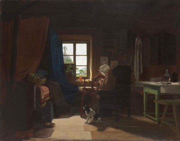 Home page Online resourcesCollectionsWorks of Painting Пряха Klodt M. 1835–1914 Пряха 1863 oil on canvas. 40 x 50 Ж-11711 Пост. в 1987 из Росизопропаганды Period Late 19th century CategoryInterior, Genre Painting Keywords The Epoch of Alexander II (1855-1881) | Art of the 1860s | Peasants | headdress | labor, work | Dogs | plants | domestic animals | crockery | Furniture Share «Виртуальный Русский музей» в социальных сетях: