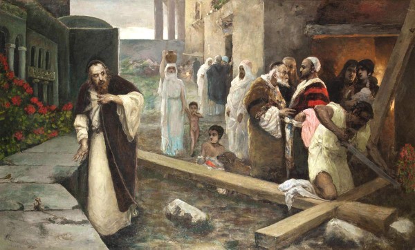 Вильгельм Котарбинский принадлежал к числу русских художников польского происхождения, чье творчество было отмечено чертами общеевропейского космополитизированного академизма. Он одинаково успешно работал в самых разных жанрах, создавая произведения, неизменно пользовавшиеся успехом. В конце 1870-х – 1880-е Котарбинский исполнил ряд картин на евангельские темы. „Сооружение креста“ не является иллюстрацией конкретного библейского эпизода. В духе католической традиции и популяр- ных в то время исторических исследований о Христе, написанных Эрнестом Ренаном, Котарбинский беллетризирует Новый Завет, как бы домысливает его, восполняет сюжетные лакуны, имеющиеся в евангельском повествовании. Красивые костюмы, пейзаж, интересные, хотя и несколько одноплановые психологические характеристики персонажей – все подчинено цели создания занимательного полотна, которое бы привлекло внимание светской публики, посещавшей академические выставки. Павел Климов // Иисус Христос. СПб, 2000. С. 251.