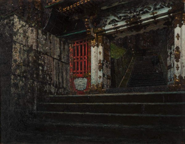 Один из самых известных памятников Никко, расположенный на склоне горы храмовый комплекс Тосегу был создан как мемориал полководца и государственного деятеля сегуна Иэясу Токугавы в 1636–1647 годах. Он включает в себя двадцать два здания — синтоистские и буддийские святыни. К памятникам Тосегу вела величественная лестница. Ее часть изобразил художник на картине «Вход в храмв Никко». Точка зрения снизу отражает идею, заложенную в систему расположения зданий комплекса, — создать впечатление взлета в небо.
