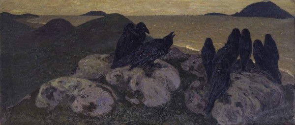 В эскизе к этой картине был изображен старинный город, обнесенный бревенчатыми стенами с дозорными башнями, на первом плане которого вороны, предвещающие добычу с поля боя. Рерих изменил композицию после разговора с Архипом Куинджи, одним из своих учителей. Художник убрал верхнюю часть с городским фоном. Ее композиционной, эмоциональной и смысловой доминантой стали огромных размеров черные птицы, олицетворяющие зло. Галина Кречина // Николай Рерих. В поисках Шамбалы. СПб, 2020. С. 17.