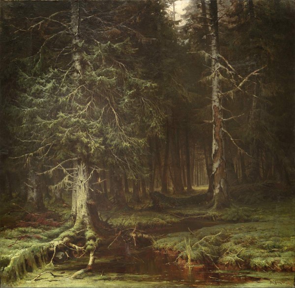 К началу 1880-х, времени создания произведения "Лес", художник обрел свое оригинальное лицо и собственный язык. Романтическая и суровая северная природа Клевера стала настоящим открытием для русского пейзажа второй половины XIX века. Он писал: "Я всякие пейзажи пишу, но по-настоящему знаю солнечный закат в различные его моменты и корявые деревья, изогнутые непогодой и ветрами". Художник создает портрет местности, со своим настроением и характером, для которого характерны некая театральность, драматизация пространства, любовь к таинственному ночному освещению, использование световых и цветовых эффектов. Несмотря на почти фотографическую реалистичность, его пейзажи нередко изображают места придуманные, не существующие в действительности. Для них характерна фрагментарность и асимметричность композиции, за счет которых во многом создается эффект вовлеченности в непроходимые лесные чащи, темный и таинственный лес.