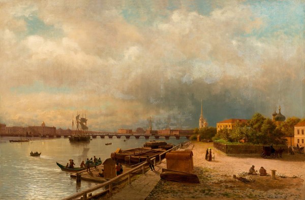 Вид на Неву и Петровскую набережную с домиком Петра I
