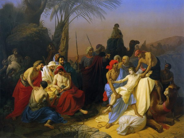 Библейский сюжет был назначен для картины Советом Академии художеств. Иаков особенно любил своего сына Иосифа за доброту и простодушие. Братья завидовали ему и решили продать Иосифа в Египет. Они показли отцу окровавленную одежду юноши и сказали, что его растерзали дикие звери. В апреле 1855 года художник приступил к работе над произведением. Картина выдержана в классических канонах академического искусства и представляет собой образец творчества Флавицкого раннего периода, практически не дошедшего до нашего времени. Полотно было высоко оценено академическим Советом. Флавицкому была присуждена Большая золотая медаль, которая давала право на пенсионерскую поездку за границу. Екатерина Шилова // Большая картина. СПб. 2006. С. 90.