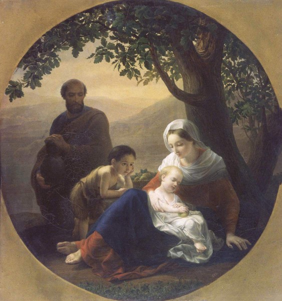Произведения Петра Шамшина относятся преимущественно к церковной живописи. Он писал образа для Исаакиевского собора, церкви Святого Мирона при лейб-гвардии Егерском полку, Благовещенской церкви Конногвардейского полка, Греческой посольской церкви, церкви Петербургского университета, а также для церквей Гатчины, Нарвы, Тифлиса, Варшавы, Афин. «Святое семейство» — характерное для своего времени станковое произведение, написанное в салонно-академической манере, близкой к манере Т. А. Неффа. По совету Н. П. Собко картина была приобретена для ИАХ на аукционе 1886 года. Уменьшенный вариант — в Симферопольском художественном музее. Светлана Моисеева // Иисус Христос. СПб, 2000. С. 92.