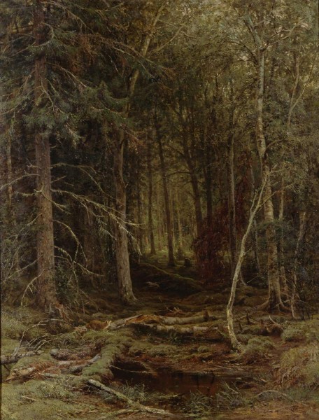 В картине „Лесная глушь“, написанной в 1872 году, Шишкин как бы вводит зрителя под полог глубокого северного леса, позволяя увидеть идущую там жизнь. И тут многочисленные детали не нарушают целостности впечатления. Неторопливый, полный значительности рассказ, выявление характерного, простота и доступность художественного языка — таковы отличительные особенности этого и многих последующих произведений. Художник теперь воспроизводит природу в органической взаимосвязи растительных форм, дающих ее живой и типический образ. Лес у него подчас суров, но не подавляет человека. Он внимательно изучает сложные переплетения ветвей, тщательно разрабатывает передний план, добивается уравновешенности композиции. Лучшие его пейзажи исполнены величавой торжественности. Ирина Шувалова. «Что может быть лучше природы!» // Иван Шишкин из собраний Русского музея и Третьяковской галереи. СПб, 2008. С. 12.