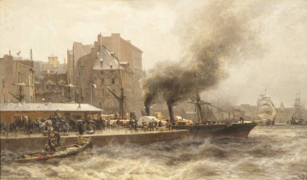 Беггров Александр Карлович — один из крупнейших мастеров морского пейзажа второй половины XIX — начала XX века, продолжавший в своем творчестве академические традиции этого жанра. Современники называли Александра Беггрова художником моря. Он владел безукоризненной техникой изображения морских кораблей. Работа написана во время пребывания художника во Франции, в портовом городе Гавре — одном из крупнейших во Франции, который стал, естественно, привлекательным объектом изображения для художника-мариниста из России.