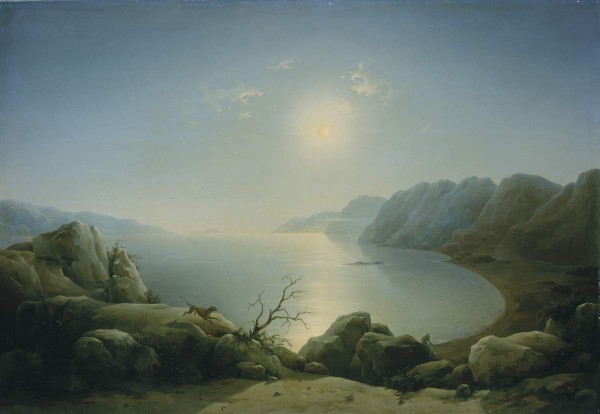 Картина исполнена по зарисовкам, сделанным во время путешествия по Ближнему Востоку в конце 1842 – начале 1843. Мертвое море – соленое озеро между Израилем и Иорданией, уникальное природное образование, своей необычностью вызывающее большой интерес. Море представлено как фантастическое место, не изменившееся с библейских времен. Николай Крылов / Айвазовский и маринисты в России. Каталог выставки в Малаге. 2021, С. 70.