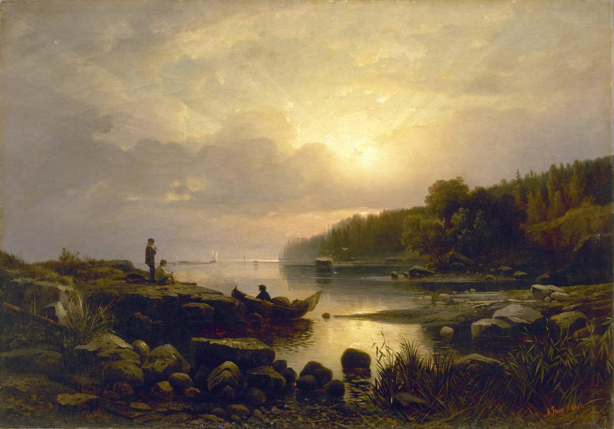 Home page Online resourcesCollectionsWorks of Painting Финляндский пейзаж Gine A. 1830-1880, Санкт-Петербург Финляндский пейзаж 1861 oil on canvas. 83,5 х 118 Ж-7705 Пост. в 1962 от Л. М. Темномеровой Period Late 19th century CategoryLandscape Keywords Art of the 1860s | Children | Finland | Boat, Sailing ships, Ships | морской пейзаж | Plants | clouds Share «Виртуальный Русский музей» в социальных сетях:
