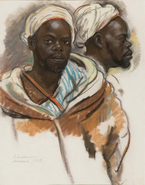 Марокко, как одна из наиболее экзотичных стран Магриба, издавна пользовалось популярностью в художественной среде. В 1912–1956 годах Марокко находилось под протекторатом Франции, поэтому больше всего там побывало именно французских художников. Серебрякова, жившая во Франции с 1924 года, побывала в Марокко дважды: с декабря 1928 по январь 1929 и с февраля по март 1932 года. Это были одни из светлых событий в ее эмигрантской жизни. Многонациональный колорит Марракеша, необычный уклад жизни, с красочными танцами, фокусами, укротителями животных стали предметами интереса художницы, которая осваивала все это недолгие шесть недель. Африка поразила Серебрякову: «Я уже две недели здесь, но так одурела от новизны ощущений, что ничего не могу сообразить, что и как рисовать». Марокканская коллекция Серебряковой, представленная на нескольких выставках в Париже, произвела впечатление на публику своей живостью и ярким светом. Наталия Соломатина // Африка в русском искусстве. СПб. 2023. С. 80.