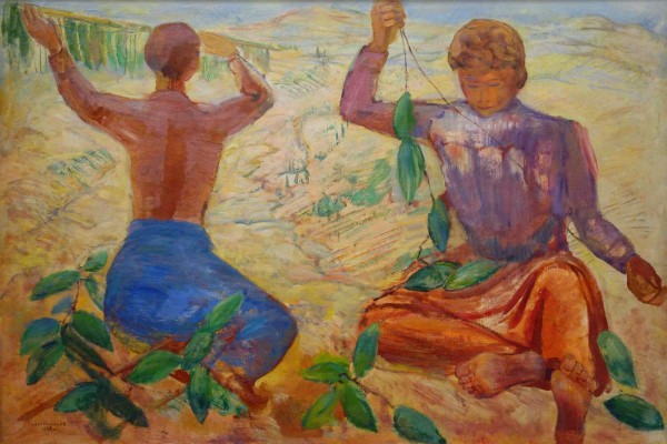 С середины десятилетия Кузнецов много работал в новых для него местах — в Крыму (1925–1930), на Северном Кавказе (1930), в Грузии (1928) и Армении (1930). Его завораживают взметнувшиеся ввысь горы и возделанные людьми холмистые пейзажи, которые изображает с высокого горизонта — «В долине» (РС-10177), «Крым. Мисхор» (РС-10178), «Чайная плантация в Грузии» (Ж-9079). Пейзажи Армении им созданы легкой, прозрачной акварелью — «На озере Севан» (РС-9986). Он пишет лишенные пафоса бессюжетные сцены труда с крупно взятыми фигурами. Обобщенные по форме, выдержанные в светлой гамме голубовато-розовых и золотистых тонов, они монументальны и как бы «просятся» стать стенописью — серия «Табачниц» (ЖБ-1182, Ж-9069, Ж-9083), «Жницы»(Ж-9085), «Сбор винограда» (ЖБ-1180). Появились ставшие классикой национальной живописи полотна — «Крестьянки» (ЖБ-1183), «Отдых пастухов» (Ж-8164), «Крымский колхоз» (1928, ГРМ, ЖБ-1179). Владимир Круглов. Павлу Кузнецову 145 лет // Павел Варфоломеевич Кузнецов. СПб, 2023. С. 16.