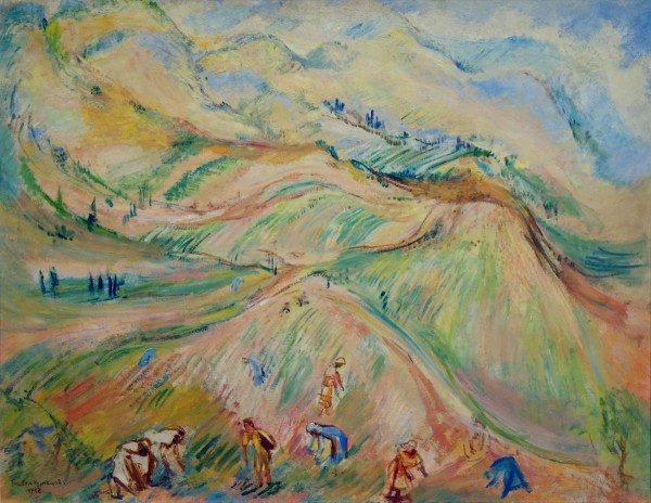 С середины десятилетия Кузнецов много работал в новых для него местах — в Крыму (1925–1930), на Северном Кавказе (1930), в Грузии (1928) и Армении (1930). Его завораживают взметнувшиеся ввысь горы и возделанные людьми холмистые пейзажи, которые изображает с высокого горизонта — «В долине» (РС-10177), «Крым. Мисхор» (РС-10178), «Чайная плантация в Грузии» (Ж-9079). Владимир Круглов. Павлу Кузнецову 145 лет // Павел Варфоломеевич Кузнецов. СПб, 2023. С. 16.