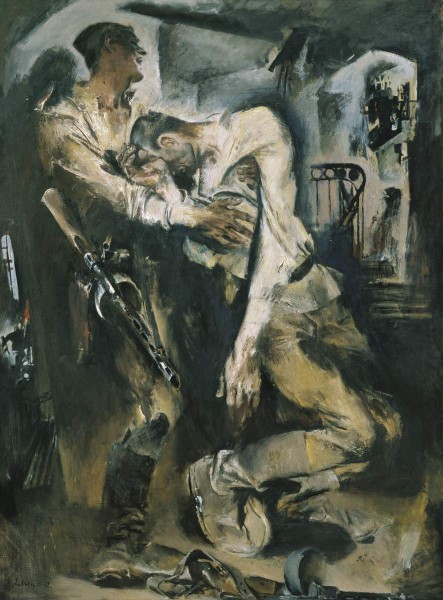 Война и те тяжёлые испытания, выпавшие на долю Евсея Моисеенко, определили этапы становления мастера, повлияли на круг тем его крупных работ, на особую манеру, сделавшую его самым «несоветским» из крупных мастеров живописи послевоенного времени. В 1970 году Моисеенко приступил к написанию мощного по своему психологизму и пластическому воздействию полотна «Победа», которое закончил через два года. Это солдатская «пьета», точный символ радости окончания войны и горечи потерь в самые первые минуты Победы. Живописный монумент, воплощающий бессмертность подвига и мысль о высокой человеческой цене завоёванного — так описывал картину известный советский и русский искусствовед и художественный критик Анатолий Дмитренко. Е.Б. Могилевский, В.М. Ахунов. Материалы к аудиогиду по выставке «Память» для платформы Izi.travel. 2020.