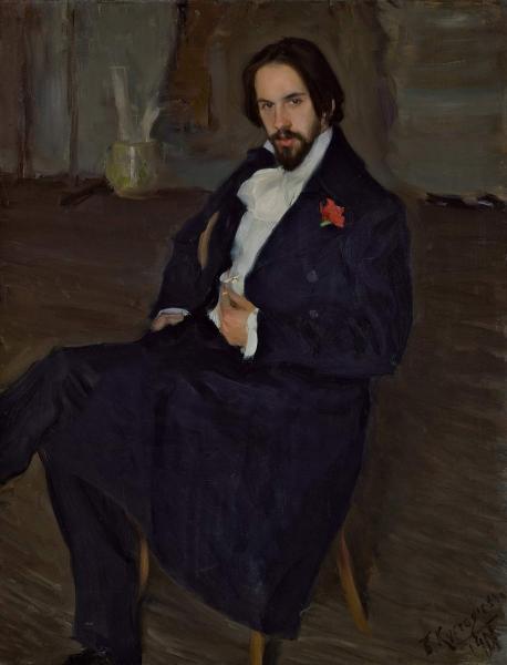 Большое место в творческом наследии Кустодиева занимают портреты. Будучи членом объединения «Мир искусства» он планировал написать групповой портрет членов объединения, написав к нему эскиз (1920) и создав отдельные портреты всех своих соратников по объединению. Ивана Билибина Кустодиев писал несколько раз. Портрет 1901 года — самый ранний.
