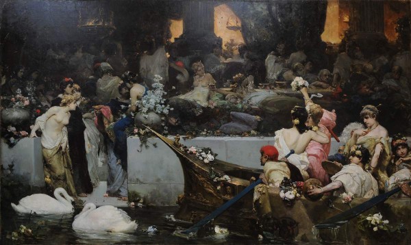 Во второй половине XIX века изображение римских оргий получило широкое распространение в академическом искусстве. В этом смысле картина Вильгельма Котарбинского — типичный и блестящий пример воплощения данной темы. Обращает на себя внимание та непринужденность, с которой Котарбинский скомпоновал эту многофигурную композицию, написанную широким, виртуозным мазком. В этом, возможно, самом большом, станковом полотне художника в полной мере раскрылся его потенциал как мастера монументальной декоративной живописи.