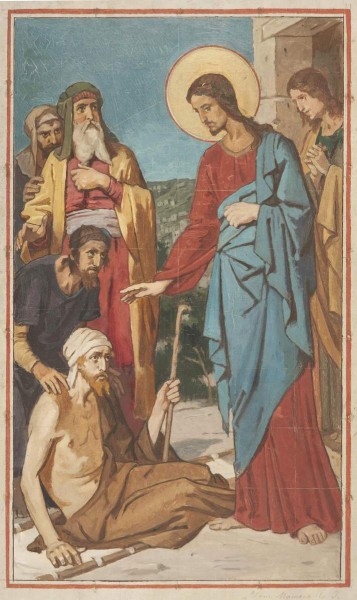 „Есть же в Иерусалиме у Овечьих ворот купальня, называемая по-Еврейски Вифезда, при которой было пять крытых ходов; / В них лежало великое множество больных, слепых, хромых, иссохших, ожидающих движения воды; / Ибо Ангел Господень по временам сходил в купальню и возмущал воду, и кто первый входил в нее по возмущении воды, тот выздоравливал, какою бы ни был одержим болезнью. Тут был человек, находившийся в болезни тридцать восемь лет. Иисус, увидев его лежащего и узнав, что он лежит уже долгое время, говорит ему: хочешь ли быть здоров? Больной отвечал Ему: так, Господи; но не имею человека, который опустил бы меня в купальню, когда возмутится вода; когда же я прихожу, другой уже сходит прежде меня. Иисус говорит ему: встань, возьми постель твою и ходи. И он тотчас выздоровел, и взял постель свою, и пошел“.Ин. 5, 2–9. Иисус Христос. СПб, 2000. С. 143.
