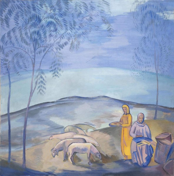 Пять картин являются бессюжетными жанрами. Их «герои» — степь и женщины за повседневными занятиями. Самоуглубленные, они кормят овец («В степи», ЖБ-1172), стригут их («Стрижка овец», ЖБ-1173), отдыхают («В степи (Лежащая в юрте)», Ж-11159), готовятся в путь («У кошары», Ж-8116), медитируют («Вечер в степи», ЖБ-1177). В степях Заволжья, в простых, «от века» повторяющихся событиях Кузнецов нашел мудрый смысл жизни, гармоничное слияние с природой, утраченные европейской цивилизацией. Для него, как и для других символистов, Восток — своего рода «зазеркалье» обыденной, европейской реальности, «иной» путь жизни и сохранившаяся «естественность». Гармоничен и утончен колорит полотен. Цвет и линии, утверждая их двухмерность, вместе с тем дают иллюзию пространства, расширяя его беспредельно. Пейзажи пронизаны чистым спокойным светом, плавными ритмами линий и форм, а персонажи кажутся причастными тайнам земного бытия. Красота композиционного и колористического решения служит в картинах идее целостного мира, построенного на естественных, «изначальных» законах. Владимир Круглов. Павлу Кузнецову 145 лет // Павел Варфоломеевич Кузнецов. СПб, 2023. С. 12-14.