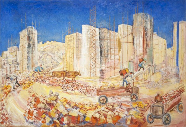 Несмотря на критику своего творчества, мастер, не теряя самообладания, много работал, участвовал в выставках — «Художники РСФСР за 15 лет» (1932–1933), Всесоюзной (1939). В 1937 году за панно «Жизнь колхоза» (1936–1937, местонахождение неизвестно) он был удостоен серебряной медали Всемирной выставки в Париже. Художник за десятилетие устроил три персональные выставки — в 1931, 1935 и 1940 годах. На них экспонировались работы, созданные в многочисленных поездках по стране*. Таковы лишенные патетики изображения новостроек десятилетия — акварель «Мариуполь. Гавань» (1934, ГРМ) и полное солнечного света, умиротворения полотно «Канал Волга–Москва» (Ж-9078). Кажется, в многоголосом шуме возводятся прекрасные кристаллы зданий столицы Армении — «Строительство новой улицы в Ереване» (Ж-9339), две одноименные картины «Строительство в Армении» (Ж-9077, ЖБ-1181). Владимир Круглов. Павлу Кузнецову 145 лет // Павел Варфоломеевич Кузнецов. СПб, 2023. С. 17-18.