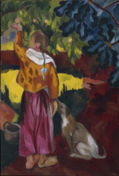 Сюжеты Гончаровой о жизни простых людей лишились традиционных для русской живописи социальных оценок. Художница питала интерес к женщине, к ее "от века" повторяющимся занятиям – жатве, сбору урожая, белению холста, стирке белья и т. д. Лишенные пространственной повествовательности, эти "вневременные" сцены с их самоуглубленными, как бы священнодействующими героинями воспринимаются как своеобразный, идущий из древности, торжественный ритуал. Этому ощущению способствуют и сдержанный колорит, и утяжеленность намеренно "упрощенных" форм рук, ног, фигур персонажей. В подобной стилистике исследователи творчества Гончаровой порой усматривают влияние "таитянских" полотен Поля Гогена. Между тем они отражают увлечение художницы русским лубком и архаической пластикой древних скифов – "каменными бабами", которые и в середине ХХ века еще находились в степях южной России.