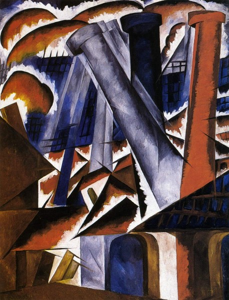 В каталоге своей персональной выставки 1913 года, на которой экспонировалась "Фабрика", рядом с названием картины Гончарова в скобках сделала примечание: "футуристическая". Футуризм привлек Гончарову главным образом как художественный метод, вернее, как один из художественных методов, разрабатываемых ею в начале 1910-х годов. Идея наглядной интерпретации динамики не могла не заинтересовать художницу, всегда ощущавшую потребность в максимальной пластической динамичности. В картине "Фабрика" Гончарова использует отдельные приемы футуристической композиции, в частности многократные линеарные и плоскостные сдвиги. Однако, воспринятые чисто внешне, они не сообщают композиции той временной и пространственной "разомкнутости", длительности, которая свойственна произведениям итальянских футуристов.