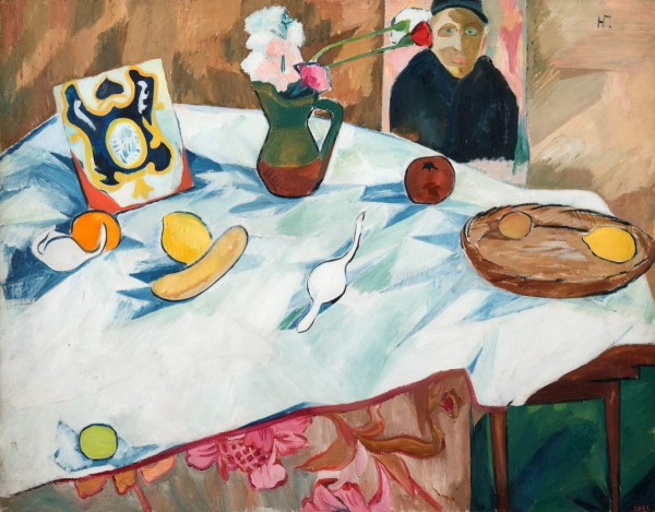 Натюрморт с портретом и белой скатертью
