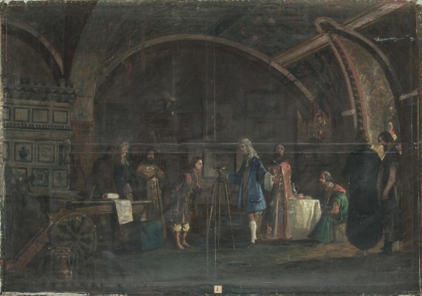 Картина относится к серии из тридцати полотен на темы из жизни Петра Великого, которые были написаны по случаю празднования 200-летнего юбилея Императора в 1872 году и экспонировались на Царицыном лугу (Марсовом поле). Реставрации не подлежит. Подробнее о серии >>>