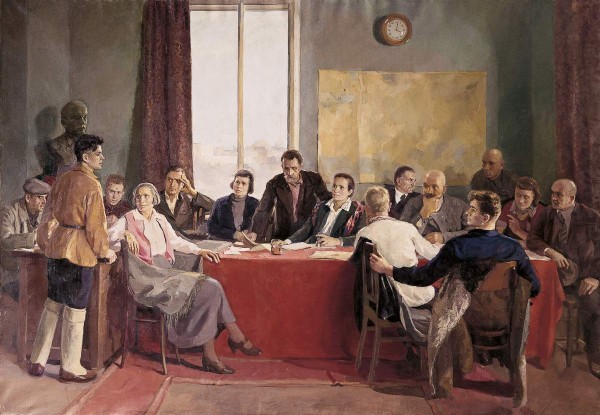 Отмеченная почетным призом выставки «Индустрия социализма» 1937 года, картина стала важной вехой в творчестве Лукомского. В работе над ней раскрылся его талант портретиста. Все участники заседания — выразительные типажи, за каждым из которых — характер, настроение, биография. По этому принципу Лукомский в дальнейшем создает большинство своих картин, представляющих собой групповые портреты типизированных персонажей, объединенных историческим или бытовым сюжетом.  // Любовь Шакирова. Большая картина. СПб., 2006. С. 204.