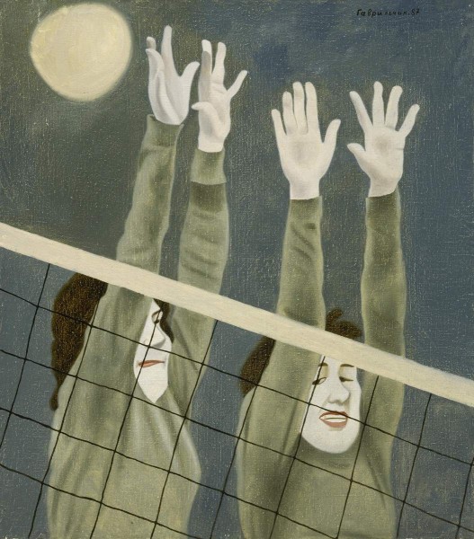 Необычное преломление тема спорта получила в 1970–1980-е годы в творчестве представителей «альтернативного» или неофициального искусства. Эмоциональная приподнятость и пафос, зачастую сопровождавшие прежде отображение этой темы, намеренно снимаются, а подчас и пародируются («Регбисты» (ЖС-447) и «Баскетбол в вихре схватки» Владимира Видермана, «Велосипедисты» Виктора Голявкина, «Игра в мяч» и «Игра в бильярд» (ЖС-180) Владлена Гаврильчика, «Сборная хоккея» Арона Зинштейна, «Бильярд 24 часа» Валерия Лукки). Своеобразную параллель этим работам обнаруживают некоторые песни Владимира Высоцкого (наряду с его героико-романтическими произведениями, например песни из фильма «Вертикаль», ставшей, по сути, гимном альпинистов), где поверхностная увлеченность физической культурой, пробежками, туристическими походами становится объектом меткой юмористической зарисовки, выходящей за рамки собственно спортивной тематики. Анатолий Дмитренко, Руслан Бахтияров. «О, спорт — ты мир!» // Спорт. СПб, 2009. С. 18-19.