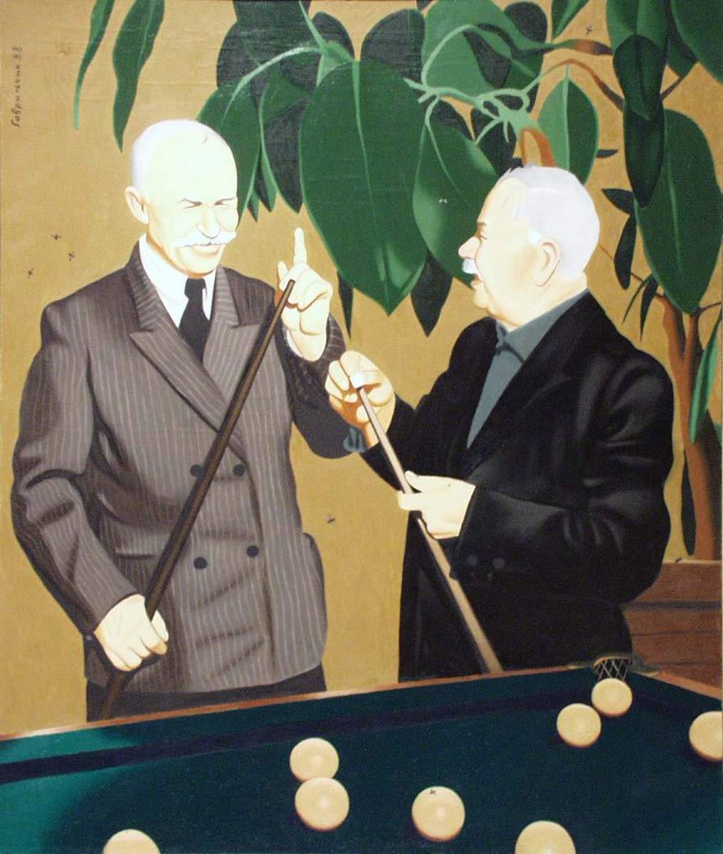 Необычное преломление тема спорта получила в 1970–1980-е годы в творчестве представителей «альтернативного» или неофициального искусства. Эмоциональная приподнятость и пафос, зачастую сопровождавшие прежде отображение этой темы, намеренно снимаются, а подчас и пародируются («Регбисты» (ЖС-447) и «Баскетбол в вихре схватки» Владимира Видермана, «Велосипедисты» Виктора Голявкина, «Игра в мяч» (ЖС-179) и «Игра в бильярд» Владлена Гаврильчика, «Сборная хоккея» Арона Зинштейна, «Бильярд 24 часа» Валерия Лукки). Своеобразную параллель этим работам обнаруживают некоторые песни Владимира Высоцкого (наряду с его героико-романтическими произведениями, например песни из фильма «Вертикаль», ставшей, по сути, гимном альпинистов), где поверхностная увлеченность физической культурой, пробежками, туристическими походами становится объектом меткой юмористической зарисовки, выходящей за рамки собственно спортивной тематики. Анатолий Дмитренко, Руслан Бахтияров. «О, спорт — ты мир!» // Спорт. СПб, 2009. С. 18-19.