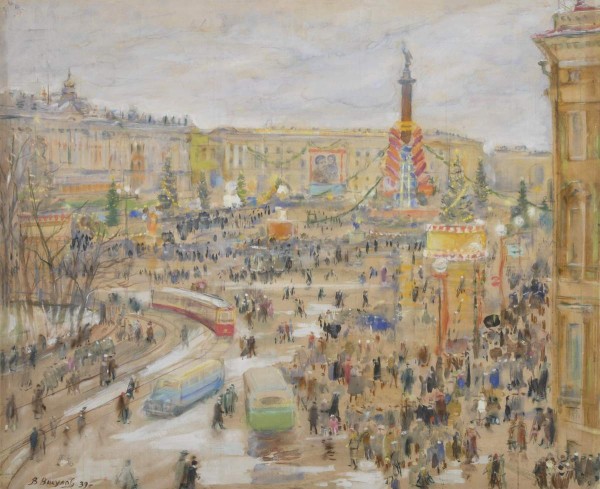 Творчество Викулова можно было определить именно как „город и горожане". Елена Павловна Жукова, старейший живописец ЛООС вспоминала о своем муже: „ему необходимо показать движение народа на площадях и улицах, он стремится передать мажорное настроение и вместе с тем вызвать у зрителя ассоциации, связанные с историческим прошлым города на Неве". Анатолий Дмитренко // Санкт-Петербург: Портрет города и горожан. СПб, 2003. С. 454.