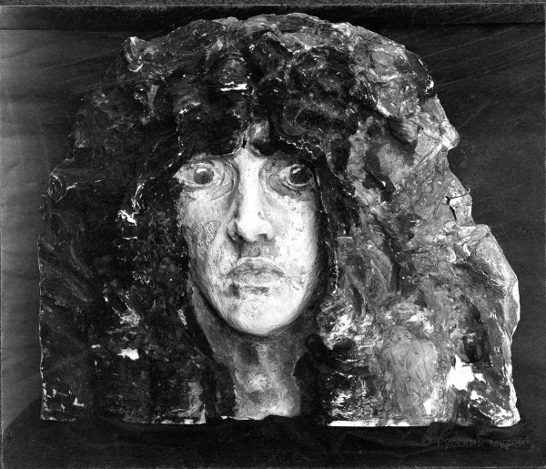 1894 годом помечена единственная сохранившаяся из множества скульптур — экспрессивная в трактовке образа, полихромная «Голова демона». В ней по-новому и убедительно реализованы идеи, волновавшие Врубеля при создании одноименных иллюстраций к поэме <М. Ю. Лермонтова>. Герой изображен страдающим, с опаленной душой. Выражение его глаз метко характеризуют слова Б. В. Асафьева: «испуганная мысль». Владимир Круглов. Наследие Михаила Врубеля в Русском музее // Михаил Врубель. СПб, 2006. С. 22.