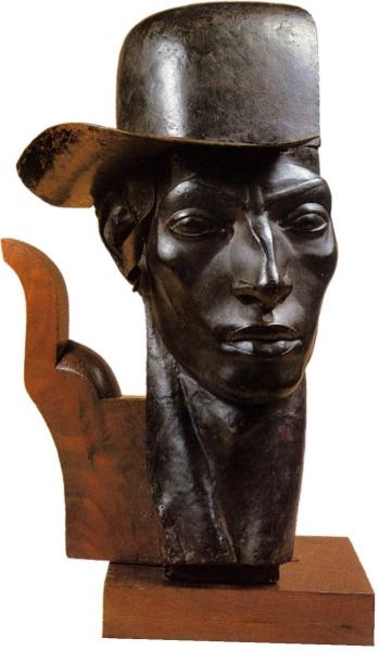 В 1916 году Альтман создал свой известный скульптурный автопортрет - новаторское произведение, в котором использовано необычное сочетание разных материалов: бронзы, меди и дерева. Смело экспериментируя, он строит его вне законов скульптуры, употребляя асимметричные элементы.