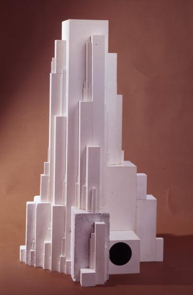 Новый термин «архитектон» и первые объемные композиции появились около 1923 года. Вертикальные модели, подобные этой, строились на пространственной динамике элементарных геометрических форм, как бы стремившихся преодолеть земное притяжение.