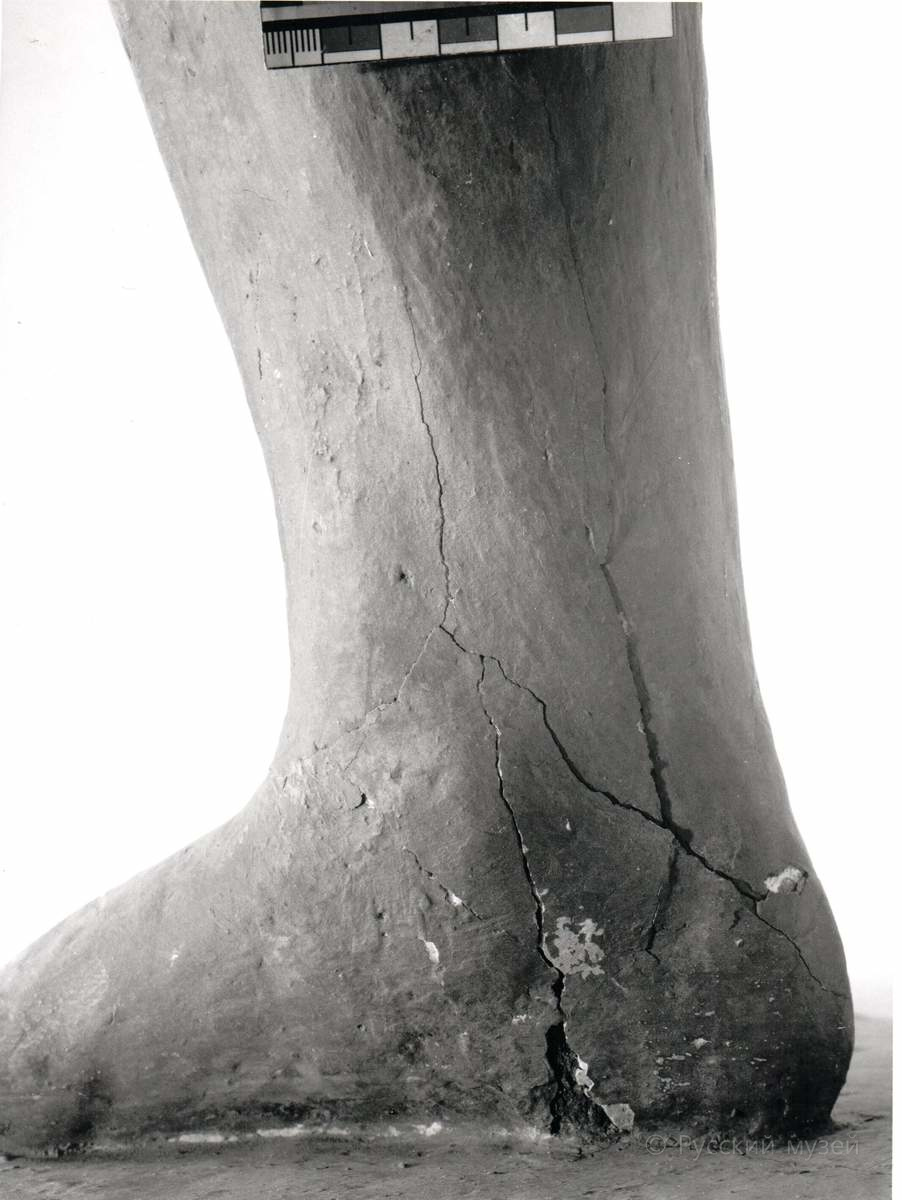 Скульптура была неустойчива из-за деформации и разлома плинта.