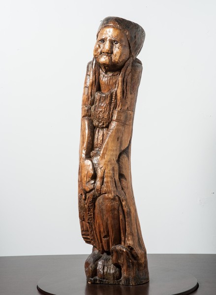 Sergei Konenkov revived the traditions of wooden sculpture in Russian art. This particular example is one of a number of warm and endearing poetic images by the master. Like many other works by Konenkov, the plastic style and colour scheme unite the principles of professional art and folk creativity.