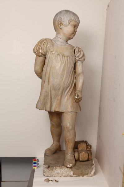 В результате реставрационных работ поверхность скульптуры обеспылена и расчищена от загрязнений. Голова девочки установлена на место, произведена склейка обратимым клеем.